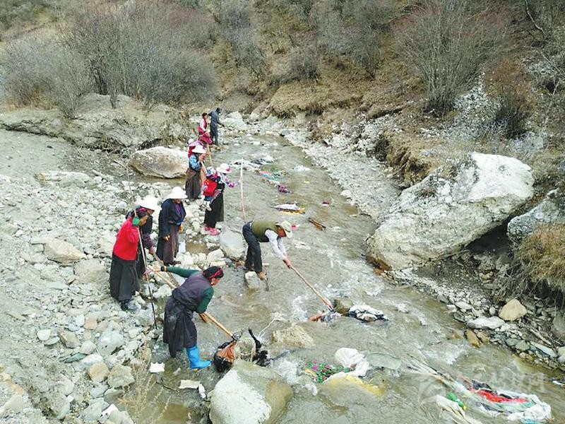 說干就干,黃先明帶領駐村工作隊隊員和村兩委班子成員不畏嚴寒,首先把全村的道路、公共設施場地進行了清掃,把道路兩邊的小土堆全部鏟平并種上花草,把村民房前屋后的柴火、廢料等重新清理并制定擺放標準。在河道整治中,黃先明帶領村干部沖在前面,對不容易清理到的垃圾,還跳到河里去撿。3月的高原還很冷,鞋子很快被交納河水打濕,但大家全然不顧。“黃隊長都帶頭干,我們更要努力?!苯患{村村民巴登鄧珠說。