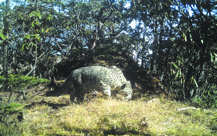 “可能很多人都不知道,距離四川成都城區(qū)這么近的地方有雪豹?!贝笮茇垏夜珗@崇州管護總站副站長王磊介紹說,收集回來的監(jiān)測畫面中,有7個監(jiān)測點位的紅外相機都監(jiān)測到雪豹活動的身影。