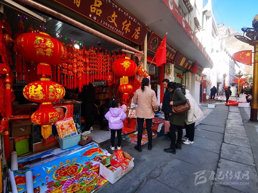 康定城區(qū)的各商場、超市紛紛擺出各類年貨,品種繁多,年味十足。走進東關(guān)菜市場,濃濃的年味撲面而來,紅紅的燈籠、春聯(lián)、福字、中國結(jié)等新春飾品琳瑯滿目,吸引眾多市民前來購買,商家忙得笑逐顏開。