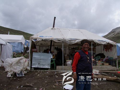 由于挖蟲(chóng)草的時(shí)間前后近2個(gè)月,所以采挖蟲(chóng)草的人往往都不回家,而是在山坳靠水的地方扎帳篷宿營(yíng)。在蟲(chóng)草采挖點(diǎn),我們看到很多這樣的宿營(yíng)地,或三、五頂帳篷扎堆,或三、五十頂帳篷聚居。在理塘縣曲登鄉(xiāng)阿加隆洼這個(gè)大的聚居地上記者看到上千頂帳篷整齊有序地排成行,不僅能看到帳篷外的煤氣罐和處處升起的炊煙,還能看到供娛樂(lè)和消遣用的臺(tái)球桌和能采購(gòu)到日常生活用品的小商店,甚至還能看到升起的紅旗。聚居區(qū)如此龐大,其實(shí)并不都是采挖人。這其中還混雜著許多蟲(chóng)草的收購(gòu)人和兜售人,還有各種到這里來(lái)做生意賺錢(qián)的人,如一個(gè)小集鎮(zhèn)般熱鬧。