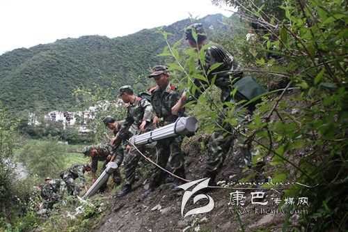 9日凌晨,因受強降雨影響,丹巴縣東谷鄉(xiāng)卡龍溝突發(fā)大面積泥石流,約20萬立方米。該鄉(xiāng)沿河村莊均被沖毀,泥沙涌入村民房中,財產損失嚴重。災情就是命令,時間就是生命。武警甘孜支隊立即啟動搶險救災預案,丹巴縣中隊50名官兵攜帶救援裝具和干糧,火速趕往事發(fā)地點,展開救援工作。