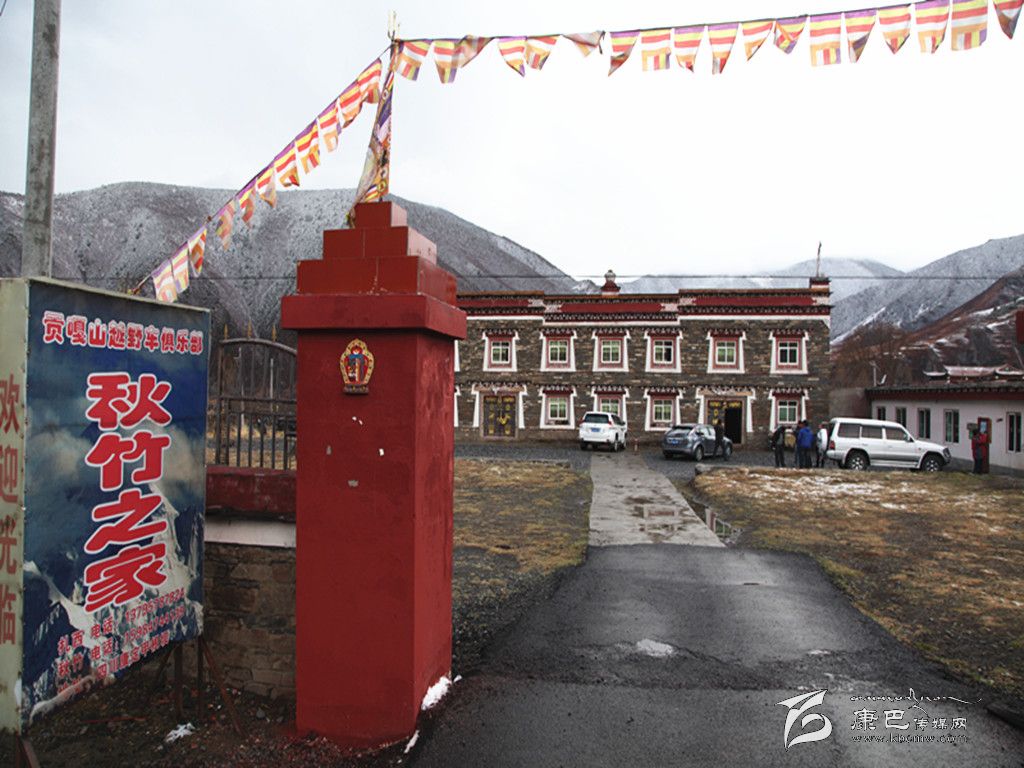 在距鄉(xiāng)政府不遠(yuǎn)的營九路邊上,有一個“貢嘎山越野車俱樂部·秋竹之家”的燈箱廣告。在雪山的映襯下,這個不大的燈箱廣告顯得格外引人注目。步入“秋竹之家”的大門,進(jìn)入眼簾的是一幢民族風(fēng)格濃郁的建筑,黑白紅三色相間的墻面,還沒有吐綠的院壩,所有的一切,都讓記者看不出這幢建筑與普通民居有什么不同的地方。