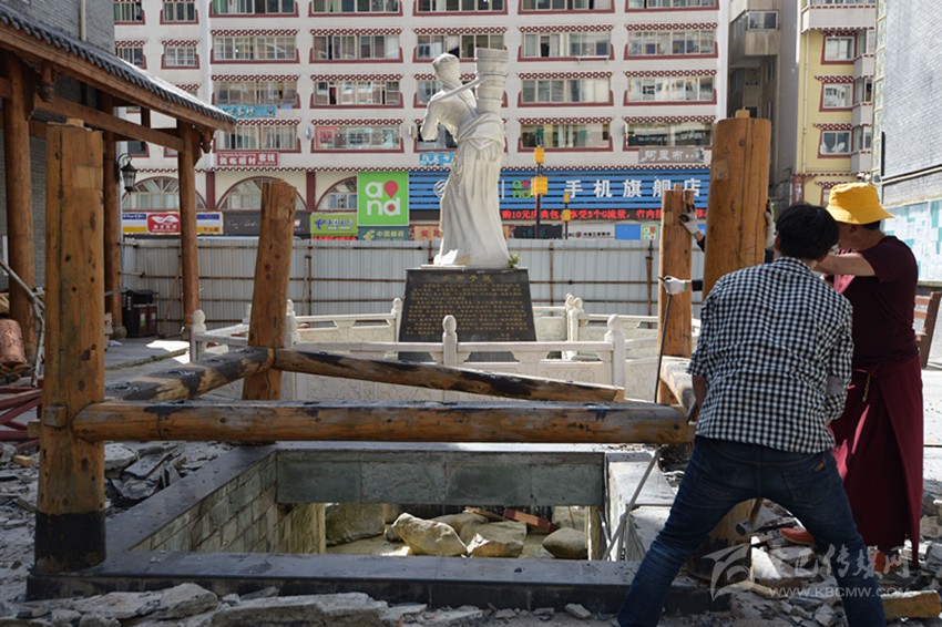 7月5日,夏日艷陽(yáng)照耀下的康定城中,散步的人們簇?fù)碓谒铀囆g(shù)景觀改造提升施工現(xiàn)場(chǎng)議論紛紛。