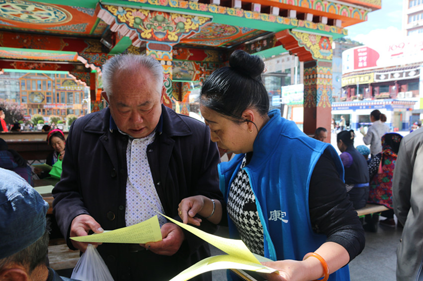 65日,網(wǎng)格員姚永紅與同事們?cè)谇楦鑿V場(chǎng)發(fā)放惠民政策宣傳資料。67歲的黃德康老人拉著網(wǎng)格員的手,不停地說(shuō)著感謝的話。黃德康至今未婚,孤身一人,年輕時(shí)在外打工,因年老體弱,2015年底回到康定前往社區(qū)報(bào)到,網(wǎng)格員了解到他的具體情況后,幫助他申請(qǐng)了低保,因?yàn)闆](méi)有住房,2016年底,網(wǎng)格員同步給他申請(qǐng)了“三無(wú)戶”和廉租房?!叭绻麤](méi)有網(wǎng)格員的幫助,我怕要露宿街頭了。我生病住院,網(wǎng)格員像我的親人一樣在我身邊照顧。我到社區(qū)去,社區(qū)領(lǐng)導(dǎo)和網(wǎng)格員哪怕自掏腰包,也要讓我吃飽。我現(xiàn)在有540元左右的惠民資金收入,社區(qū)領(lǐng)導(dǎo)和網(wǎng)格員還經(jīng)常給我送來(lái)生活用品,我非常感謝網(wǎng)格員對(duì)我的關(guān)愛(ài)?!秉S德康說(shuō)起網(wǎng)格員對(duì)自己的幫助,不禁熱淚盈眶。
