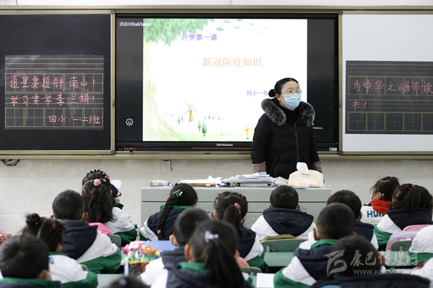 走進熟悉的校園里,遇見久違的老師與同學,即使戴著口罩也遮不住同學們的激動之情。課堂里,開學后的第一課不是語文,不是數(shù)學.....而是一節(jié)特別的防疫主題課。