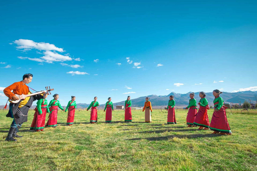澤仁彭措是位“半路出家”的鄉(xiāng)村音樂教師?!靶r候就對音樂特別感興趣,但那時候家里沒條件,很難有機會系統(tǒng)地學(xué)習(xí)音樂知識?!遍L大后,澤仁彭措成為一名教師。工作之余,他始終保持著對音樂的熱愛,自學(xué)了札木聶和弦子等樂器。
