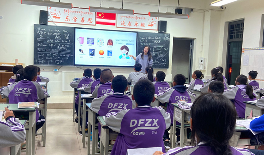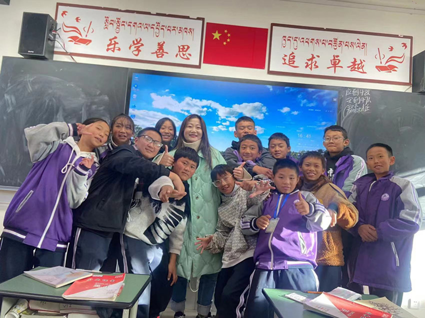 “見到來(lái)自婺城的‘娘家人’,真的太親切了?!背跻妼O川茗,她剛給道孚中學(xué)初一(9)班的學(xué)生上完課,回到辦公室看到筆者,滿臉笑意。