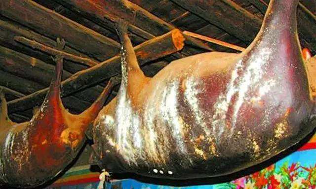 康南則用繩將豬勒死,讓血存于體內(nèi),然后用草點(diǎn)火去毛,于肛門處割一孔,取出內(nèi)臟,用干草或麥子等塞入豬腹內(nèi),用針縫合,縫口處用灶灰摻水?dāng)嚭铣珊芊?,掛在室?nèi),待其發(fā)酵,產(chǎn)生臭味時(shí)食用,稱“臭豬肉”。